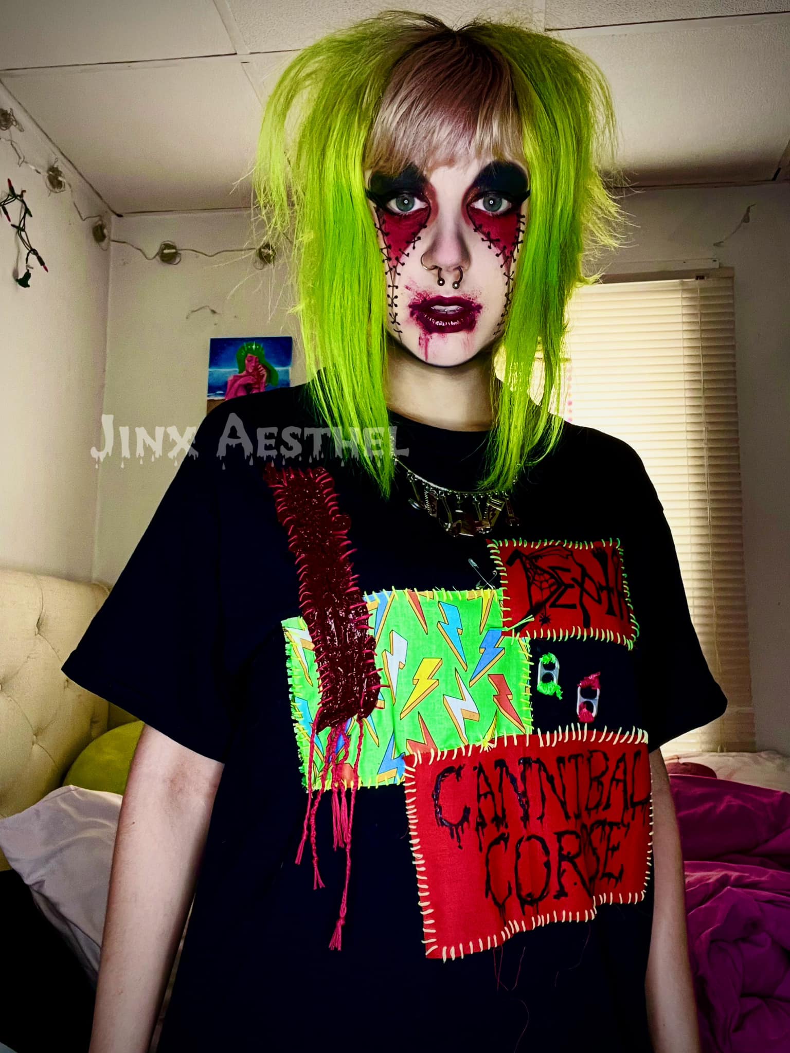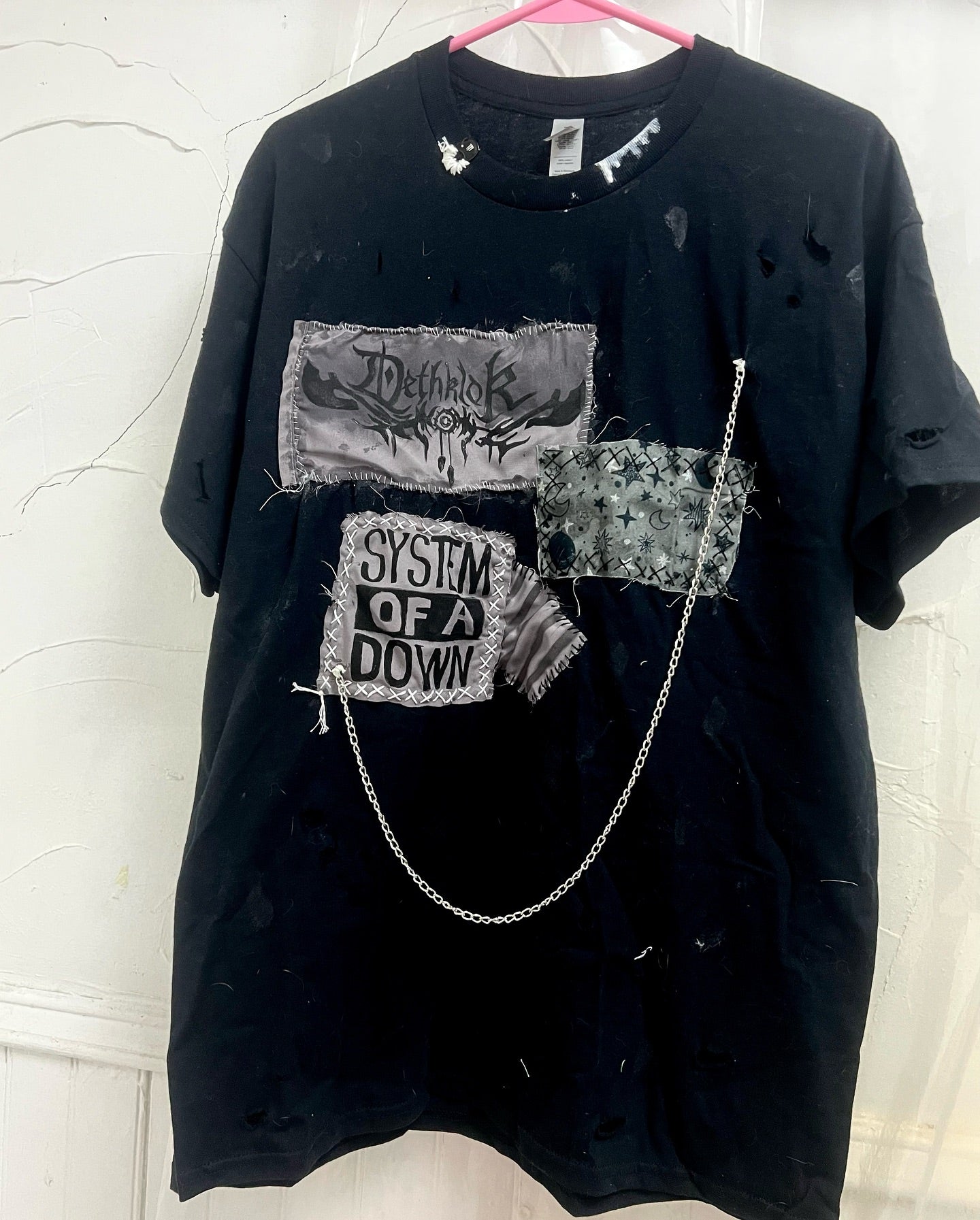 This listing is for a custom made patchwork band shirt! These shirts always bring my DIY punk heart so much joy to create!