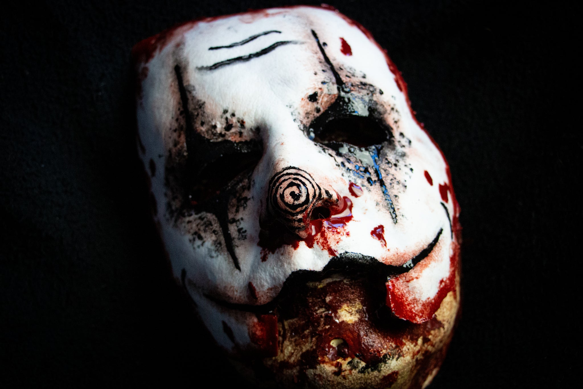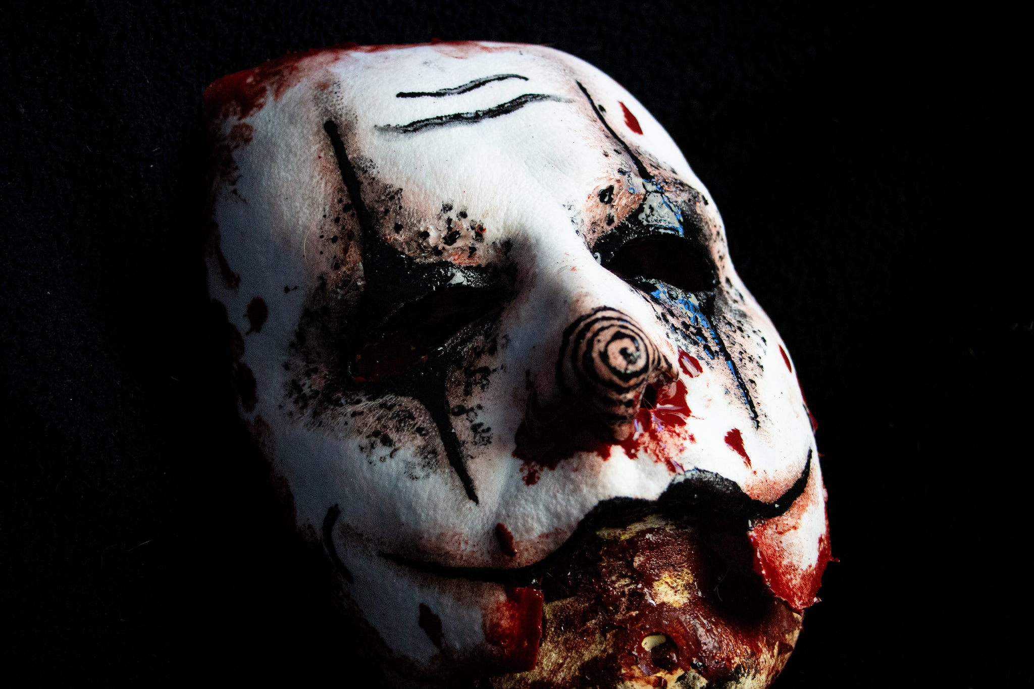 This silicone has lots of stretch, and to prevent tearing the mask has embedded anti-tear fabric around the outside edge as well as the corners of the eyes and the mouth. The coloring is all done with pigmented silicone, so it will never rub off or fade. The bloody edges and back side of the mask will always look wet!