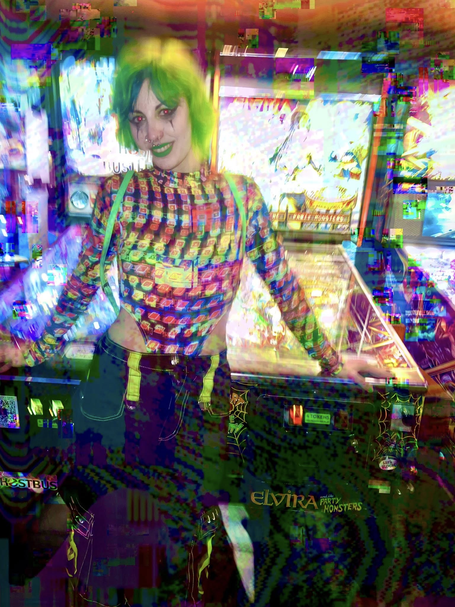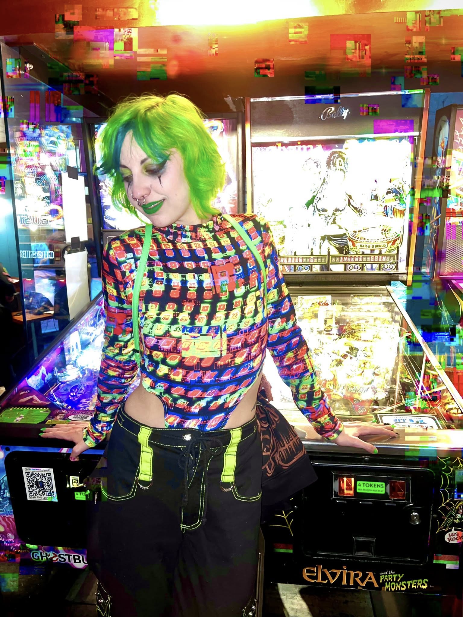 This bodysuit has a turtleneck top, long sleeves, and a flashy high cut out waist, printed with the non orthogonal glitch design!
